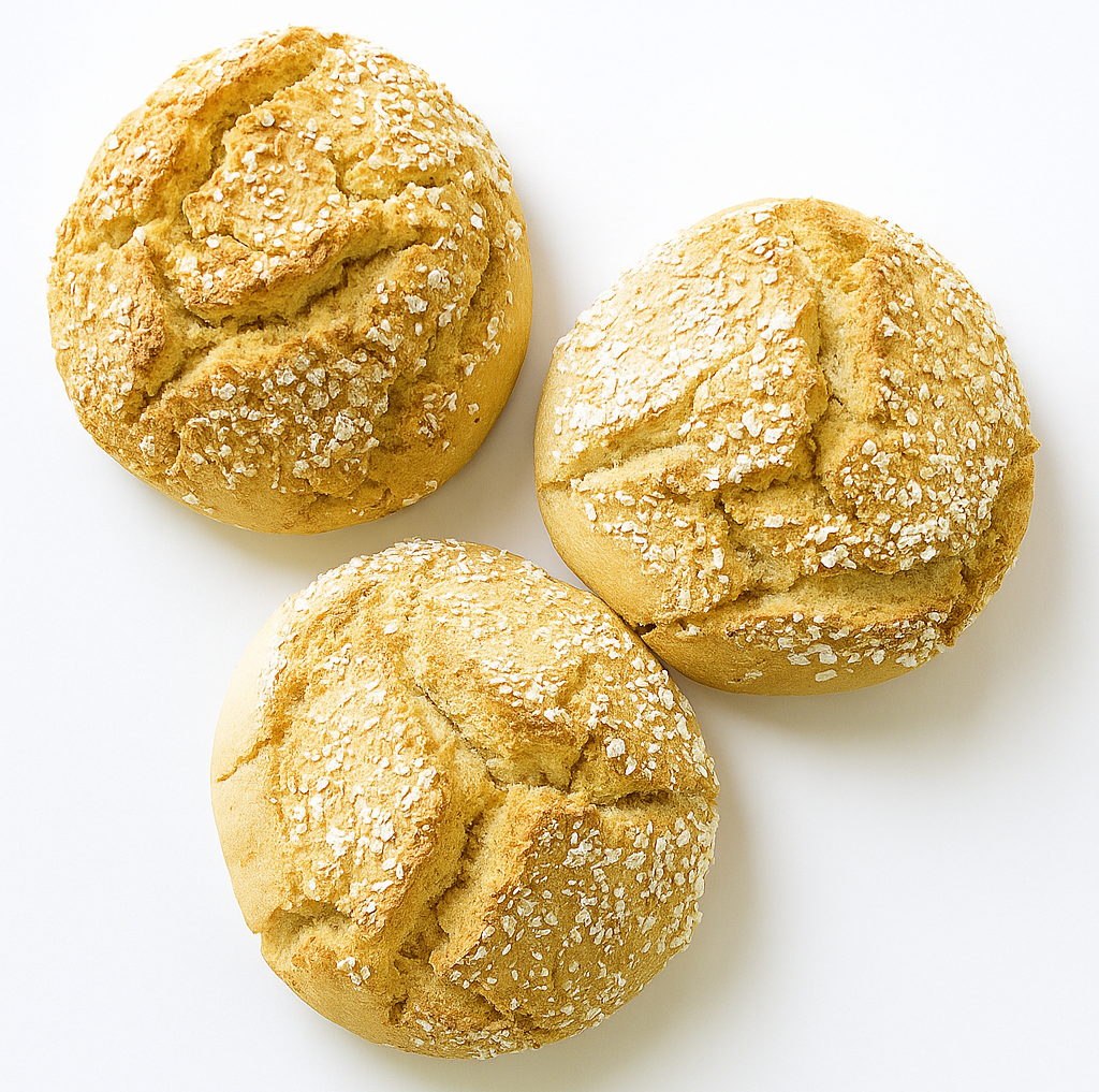 To zdrowe, smaczne, rumiane bułeczki idealne na śniadanie, wypieczone z mąki jaglanej i orkiszowej.