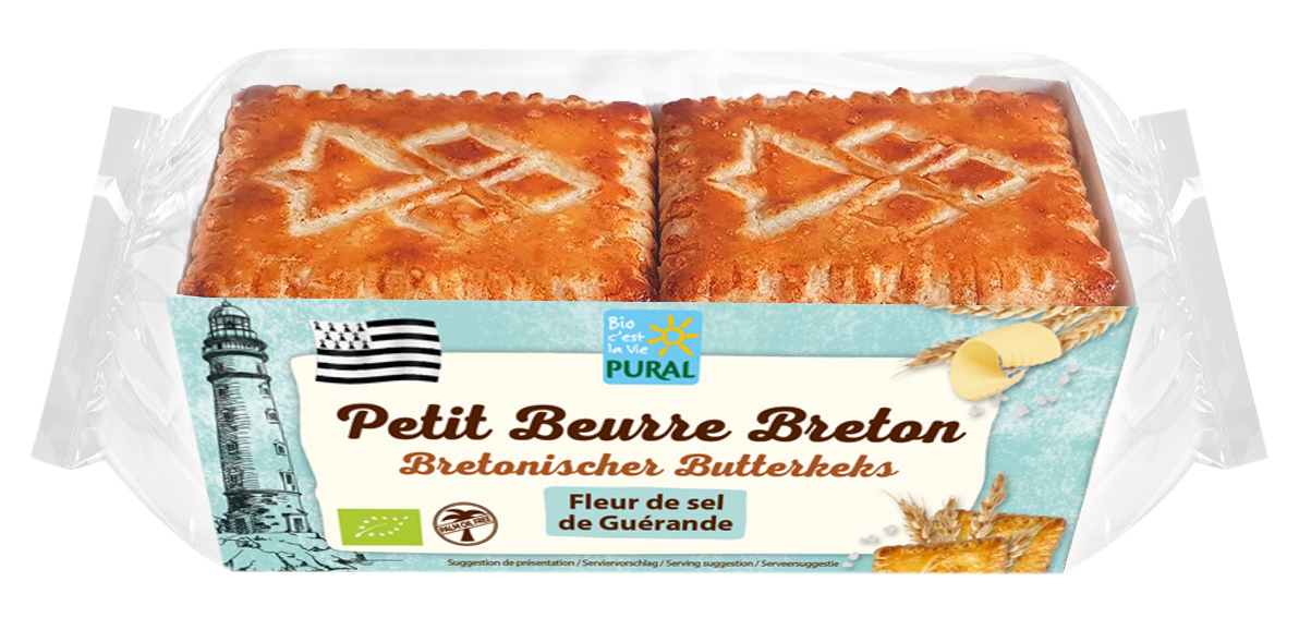 mąka PSZENNA*, cukier trzcinowy*, MASŁO* (23 %), proszek JAJECZNY*, substancja spulchniająca: wodorowęglan amonu, sól morska (Fleur de Sel z Guerande) (0,5 %), odtłuszczone MLEKO w proszku*. (*certyfikowany składnik ekologiczny)