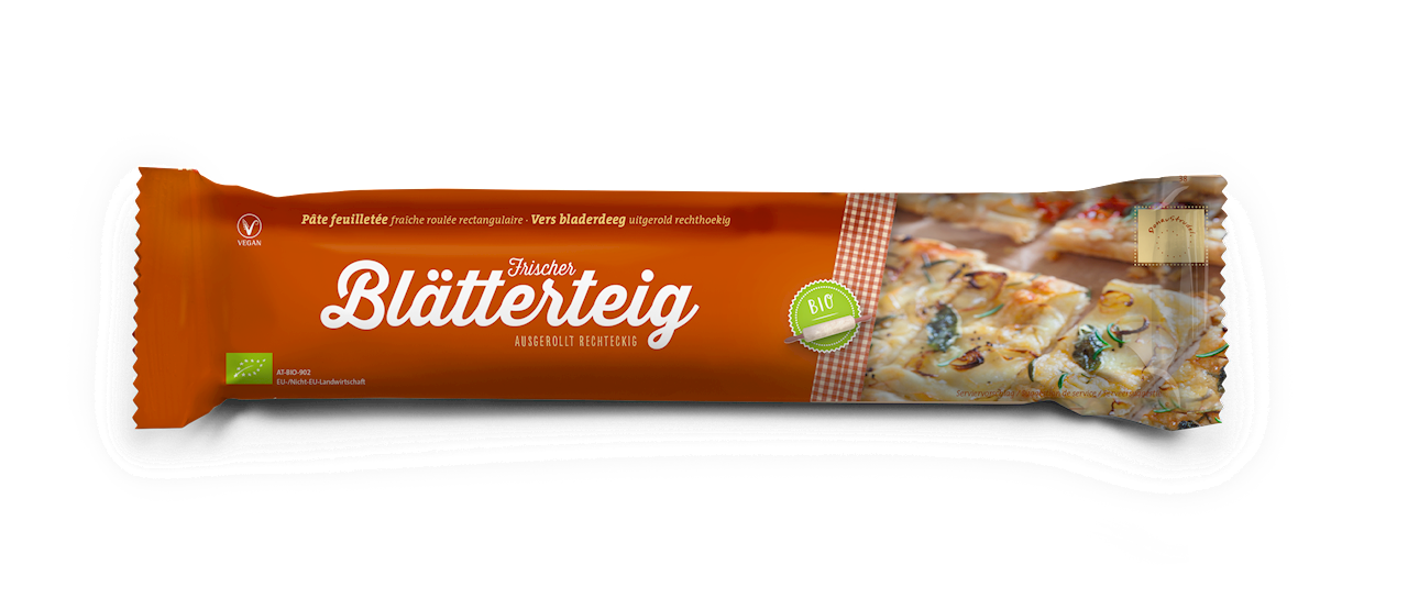 Czy to w plastrach czy w ślimakach, czy ze słodkim nadzieniem, czy też pikantnie zwijane i skręcane: dzięki naszemu świeżemu, gotowemu do pieczenia ekologicznemu ciastu francuskiemu możesz wyczarować najróżniejsze przysmaki i najlepsze wypieki. Wszystko to bez konieczności czasochłonnego wyrabiania, wałkowania, składania i odpoczywania. Zaoszczędź czas na ciasto. Lepiej od razu włóż całą swoją energię w tworzenie.