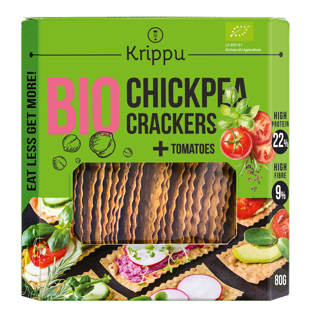Krakersy z ciecierzycy KRIPPU zawierają ponad 20% białka, co plasuje je wśród produktów o najwyższej zawartości białka pod względem wartości odżywczej.