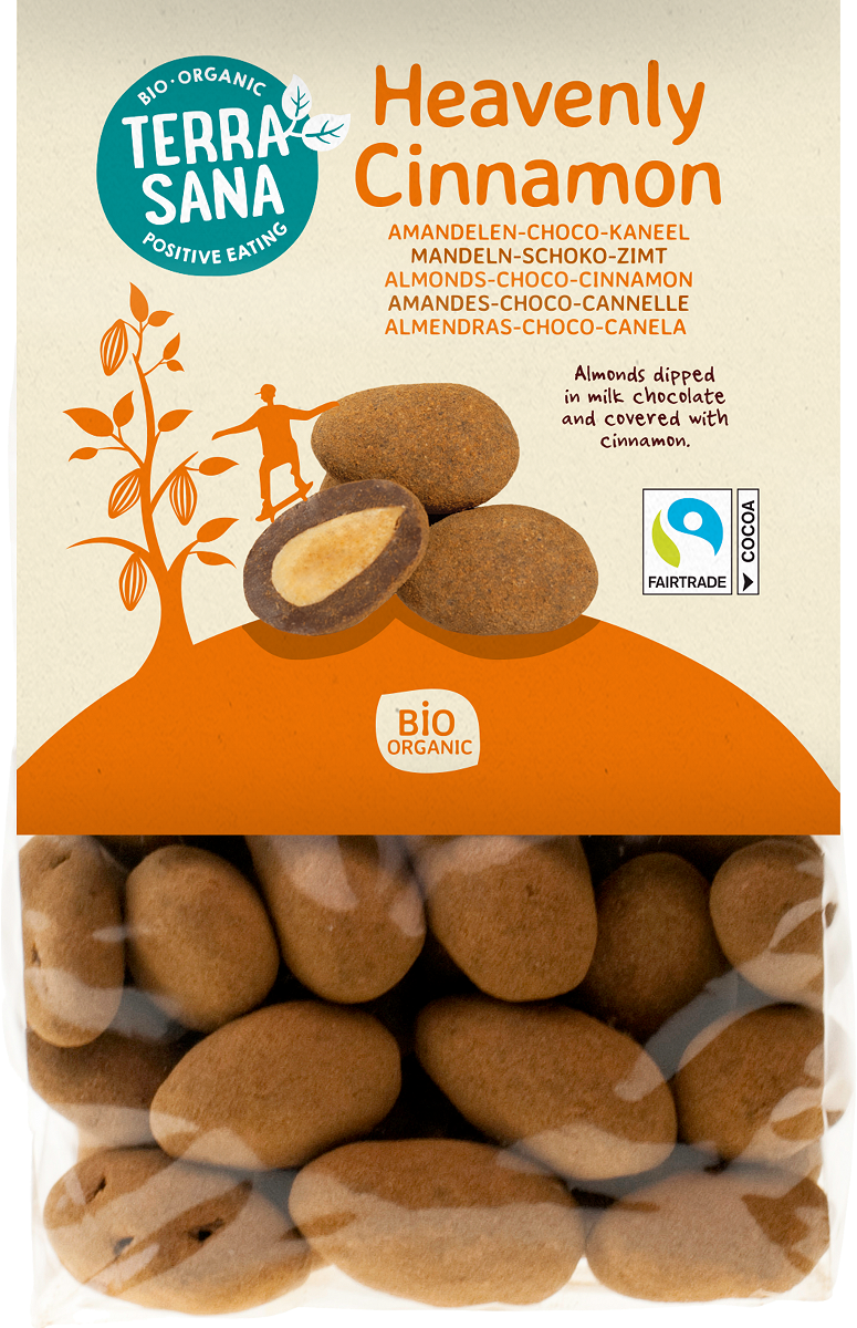czekolada owsiana* (73 %) (cukier trzcinowy*, tłuszcz kakaowy*, OWIES*, miazga kakaowa*), prażone MIGDAŁY* (25 %) cynamon w proszku* (1,5 %), kakao w proszku*. (*certyfikowany składnik ekologiczny)