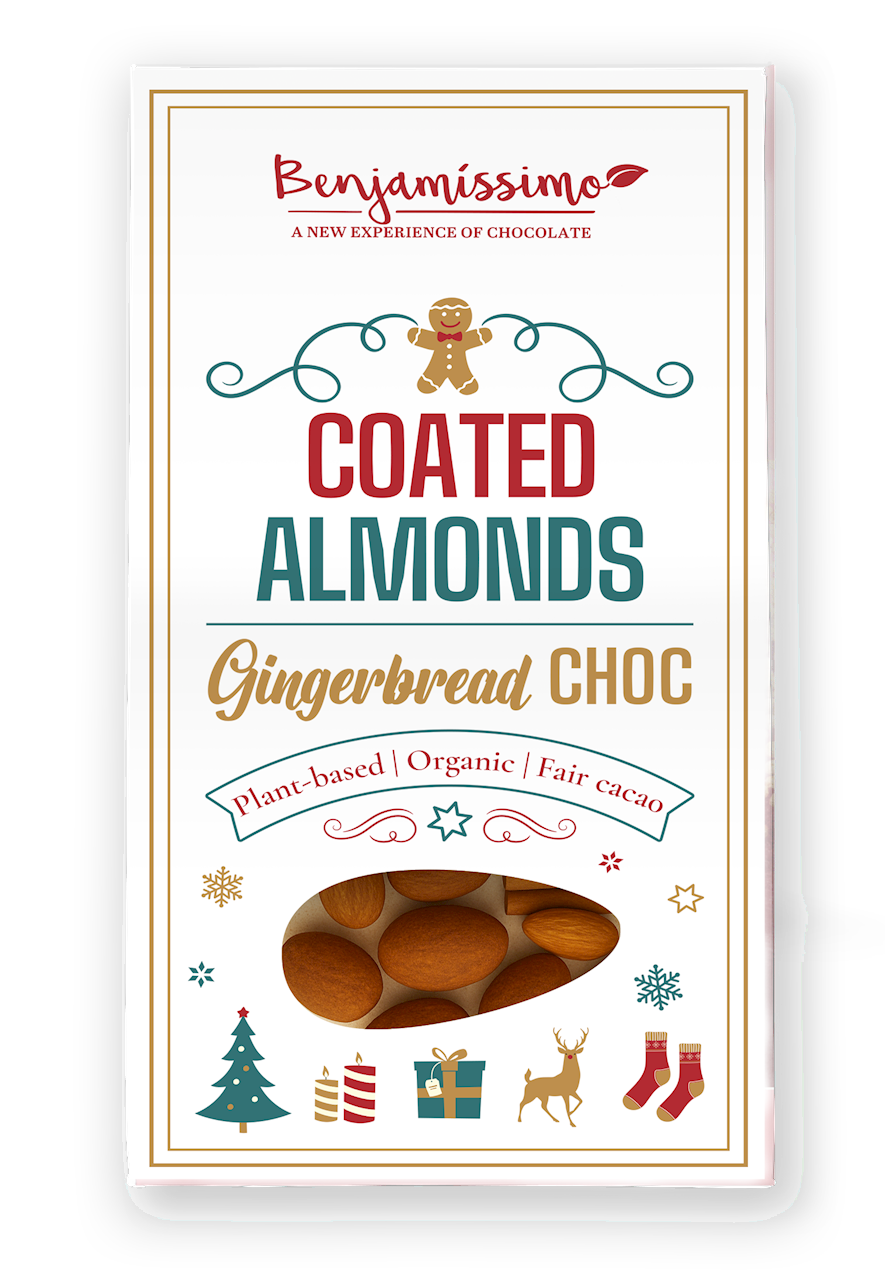 czekolada piernikowa* (69 %) [cukier trzcinowy*, miazga kakaowa*, napój kokosowy w proszku*, tłuszcz kakaowy*, przyprawa do piernika* (0,67 %) (cynamon*, imbir*, kardamon*, goździki*, olejek pomarańczowy*), emulgator: lecytyny (ze słonecznika*)], prażone MIGDAŁY* (26 %), posypka z przyprawą do piernika* (5 %) [kakao w proszku*, cukier trzcinowy*, przyprawa do piernika* (16 %) (cynamon*, imbir*, kardamon*, goździki*)]. (*certyfikowany składnik ekologiczny)
