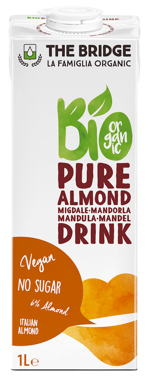 Napój migdałowy marki The Bridge to produkt z wyróżniający się podwojoną zawartością MIGDAŁÓW w porównaniu do standardowych napojów roślinnych.