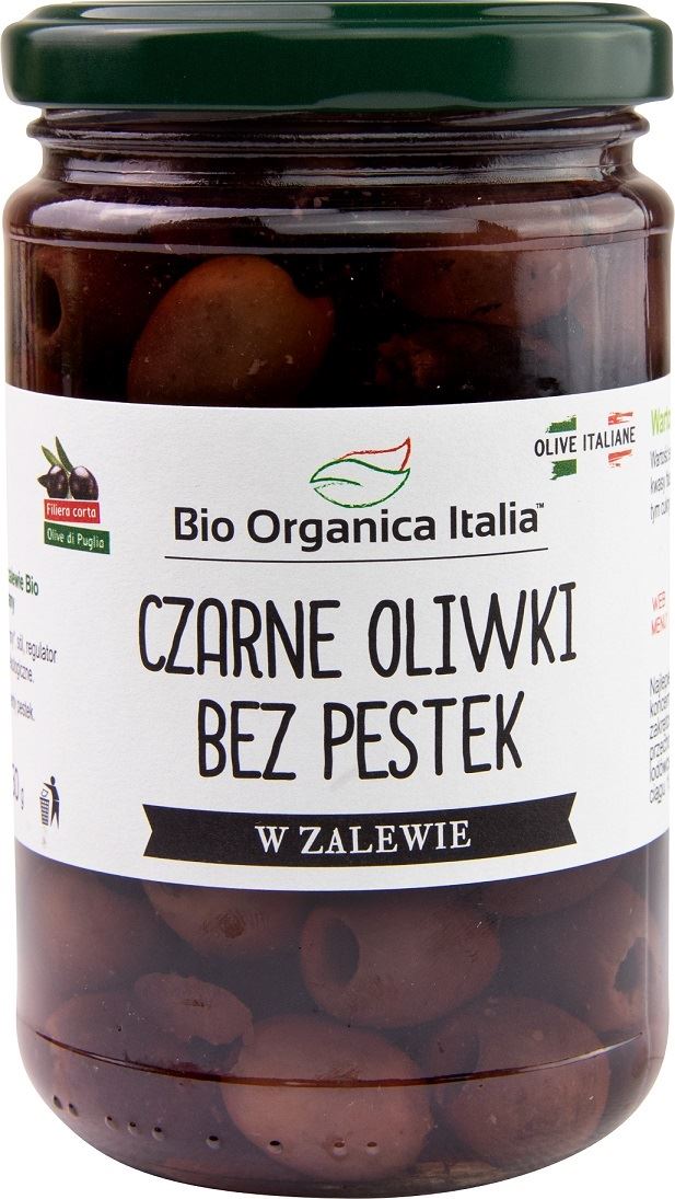 Czarne oliwki bez pestek w solance. Idealne jako przystawka lub jako dodatek do sałatek, pizzy oraz dań mięsnych lub dań rybnych. Produkt pasteryzowany.