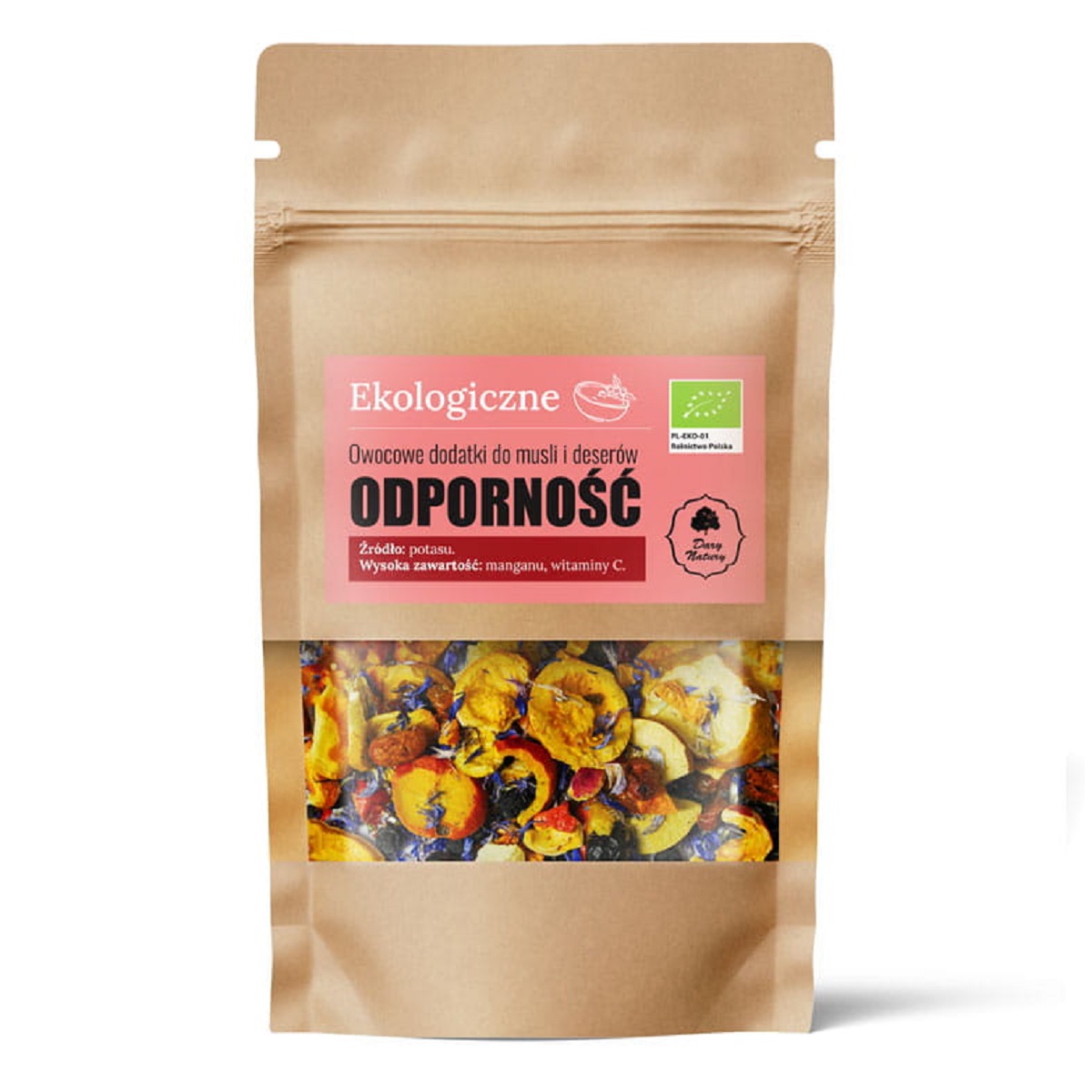 Mieszanka starannie wyselekcjonowanych owoców liofilizowanych, pochodzących z upraw ekologicznych. Polecana, jako smaczny i wygodny dodatek do posiłków. Przyjemna chrupkość i naturalnie owocowa słodycz zachwycą każdego smakosza, który chce zadbać o swoją odporność.