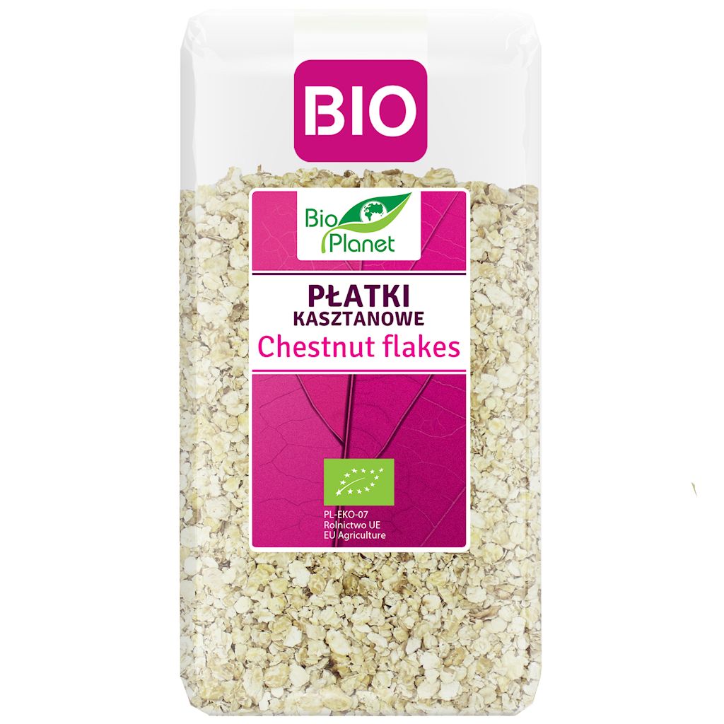 Ekologiczne płatki kasztanowe wytwarzane z kasztanów jadalnych. Polecamy jako samodzielna przekąska lub pożywny dodatek do jogurtów, musli, wypieków oraz deserów. Charakteryzują się delikatnie słodkim i orzechowym smakiem, stanowiąc doskonałe urozmaicenie codziennej diety.
