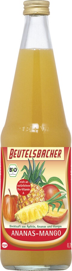 bezpośredni sok jabłkowy* 56 %, bezpośredni sok ananasowy* 30 %, pulpa z mango* 14 %. (*certyfikowany składnik ekologiczny)