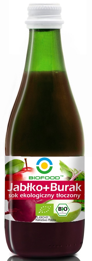 bezpośrednio tłoczone soki z jabłek* (60 %), buraka* (40 %) (*certyfikowany składnik ekologiczny)