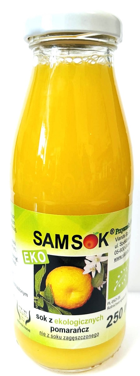 Sok bezpośrednio tłoczony NFC (nie z koncentratu) z owoców pomarańczy. Produkt pasteryzowany.