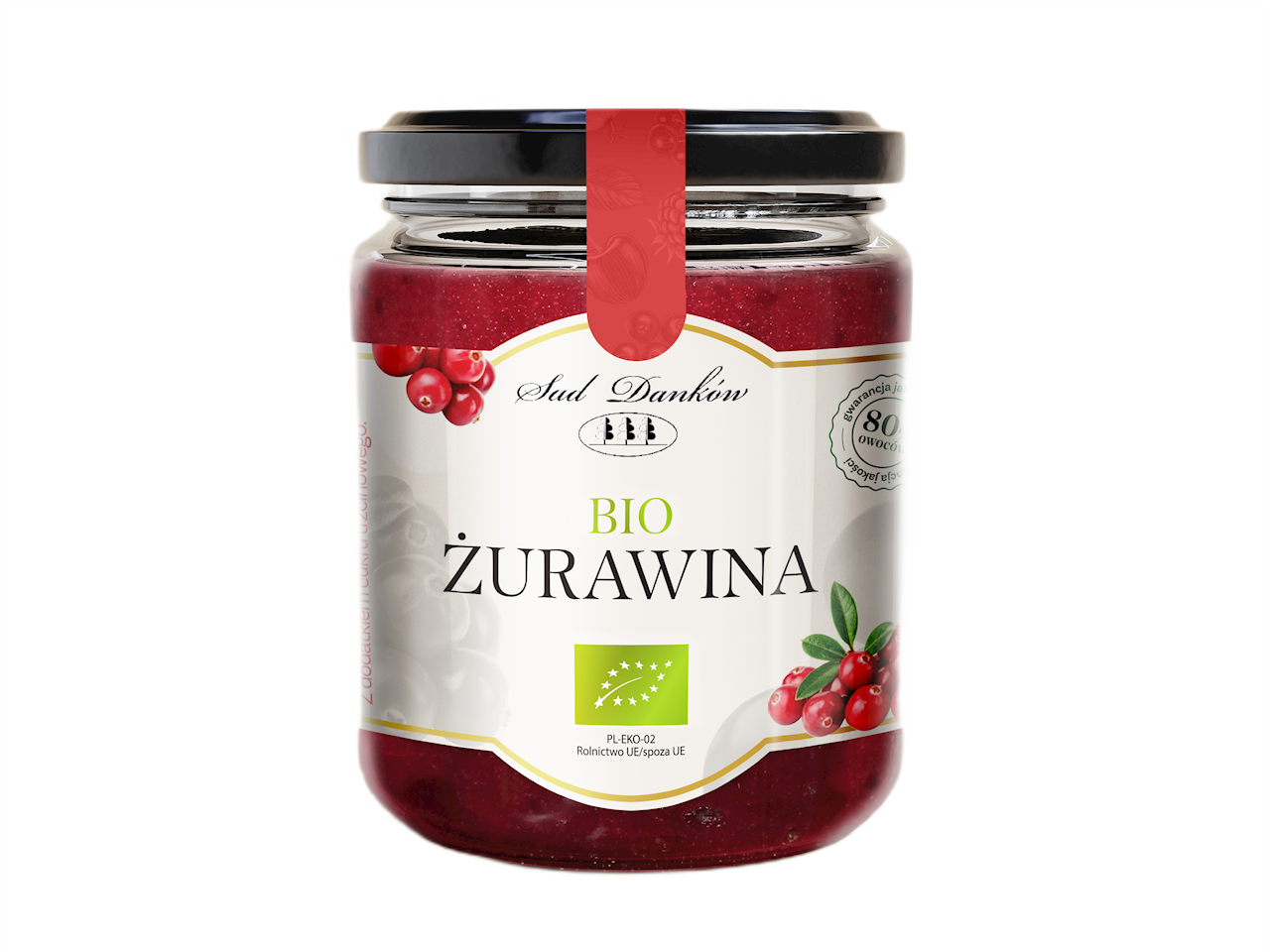 ŻURAWINA 80 % Z CUKREM TRZCINOWYM BIO 260 g – SAD DANKÓW